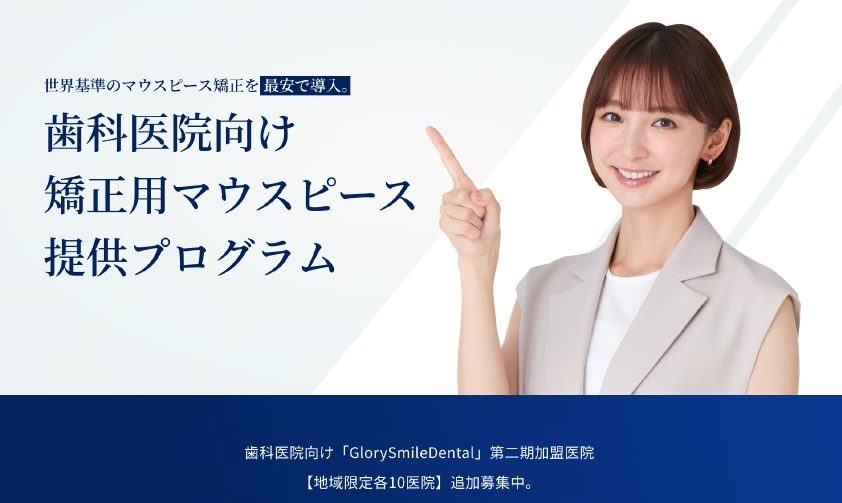 歯科医院さんと一緒に行う安心・安全・低価格の全顎マウスピース矯正「GlorySmileDENTAL」を提供している加盟歯科医院